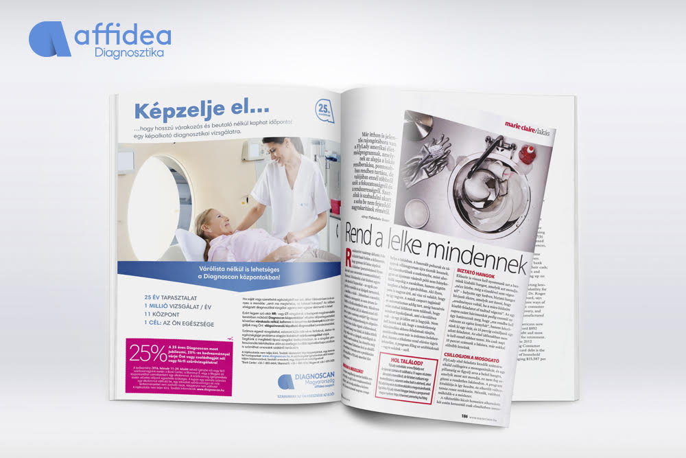 A Diagnoscan (később Affidea) márkán 2016-ban kezdtük el a közös munkát. A képalkotó diagnosztikával foglalkozó magyar cég együttműködést alakított ki a magyar kórházakkal is, de mára saját központokkal is rendelkeznek.